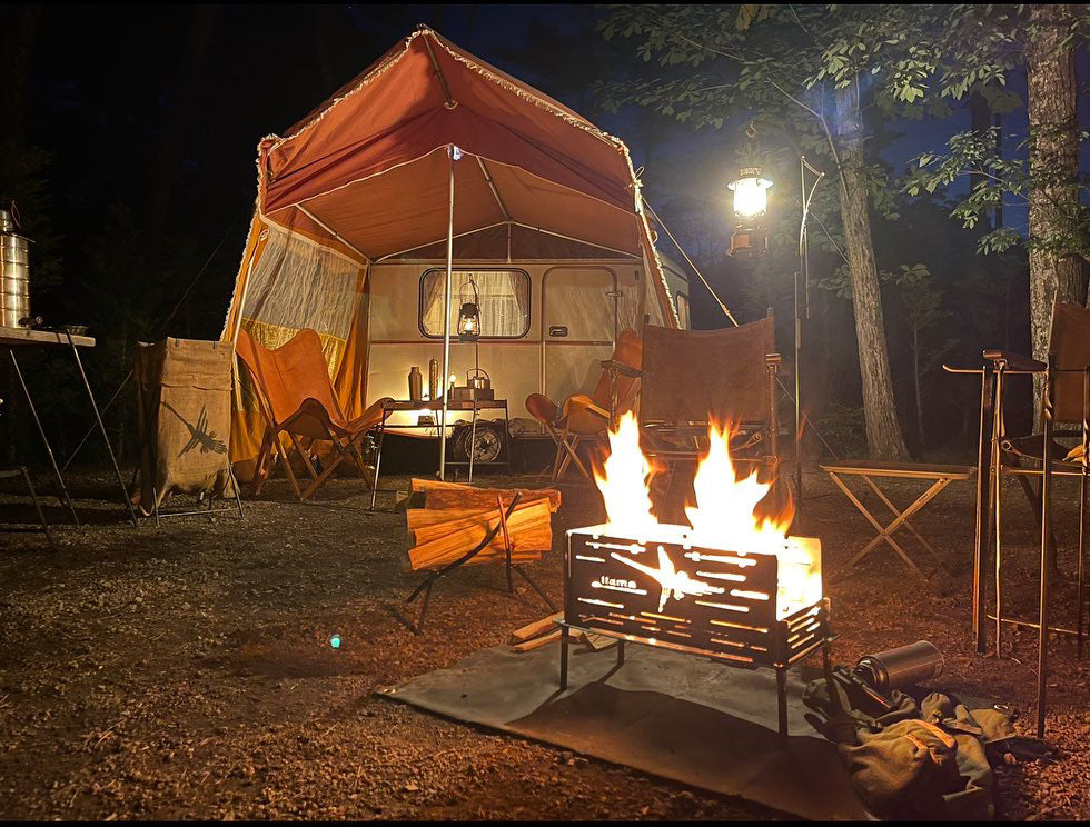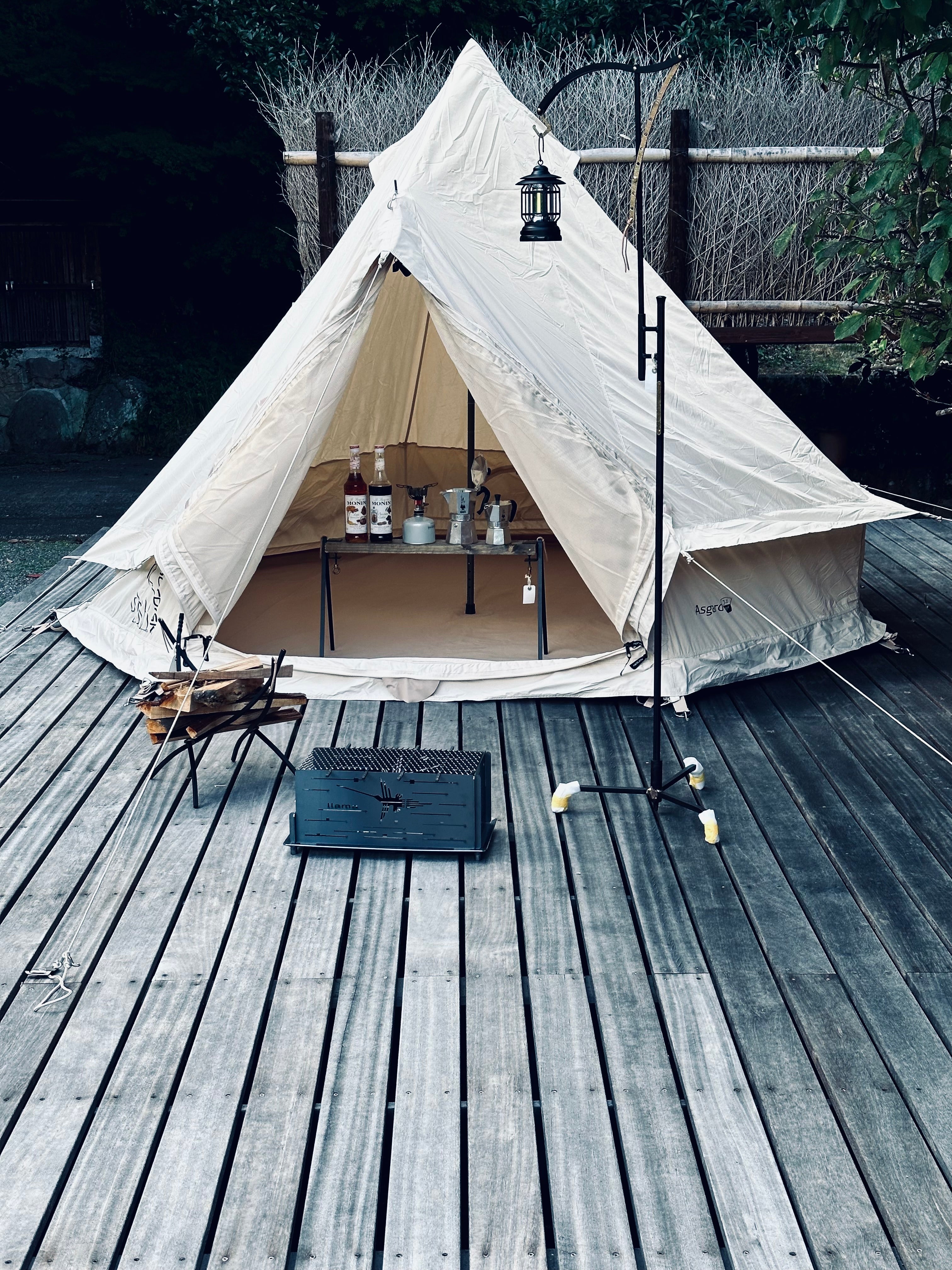 キャンプのご予約庭と山が接続する部分を使って一日1組限定で貸切のキャンプができるように整えております。夜は鹿が近くまでやってくる一味違うキャンプ体験。2023年10月よりお使い頂け、ご予約は同年9月より承る予定でございます。