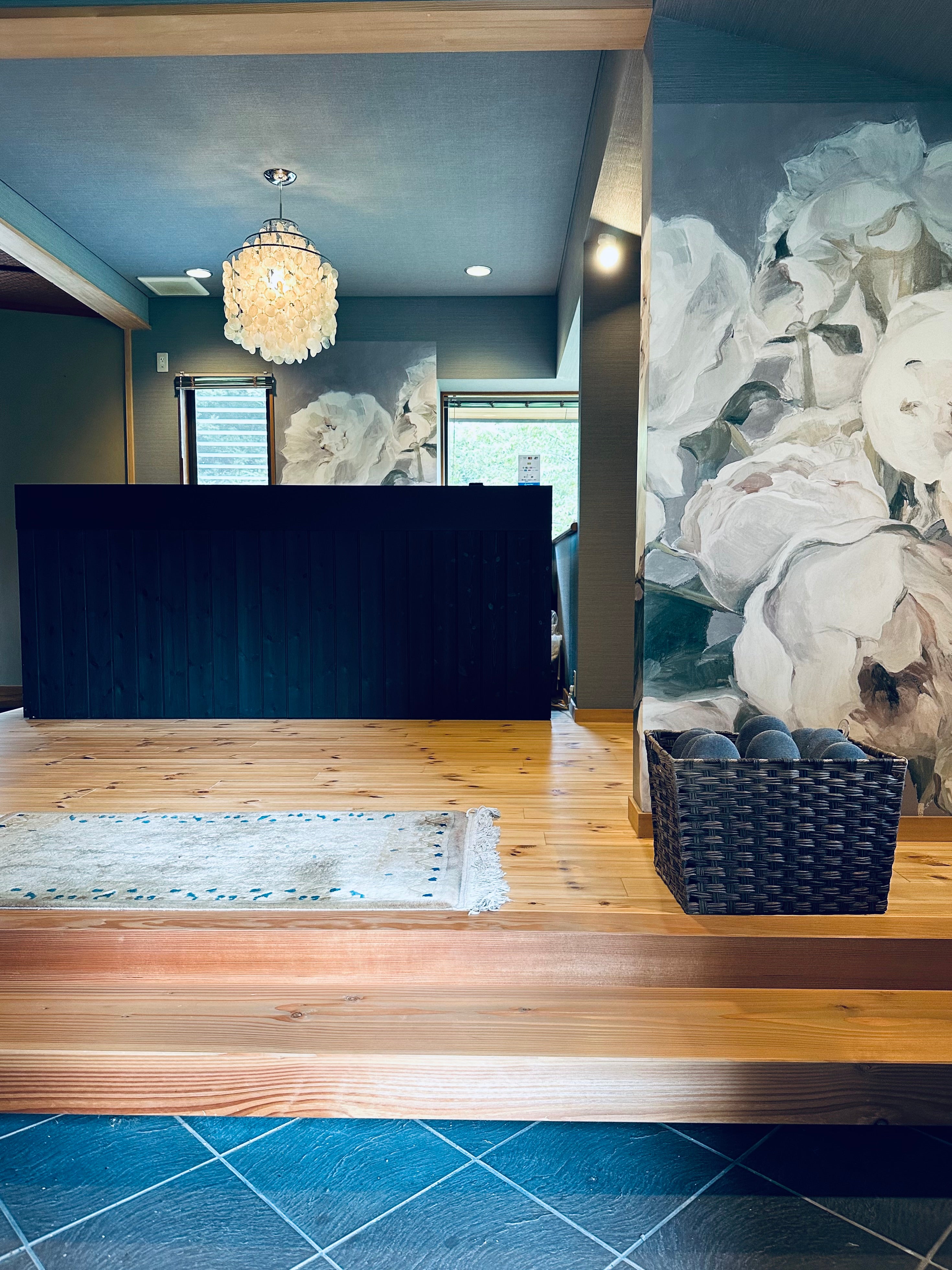 門扉を入り、石段を登って右手側が受付になっております。各種クレジットカード、電子決済などお使い頂けますのでお申し出下さい。