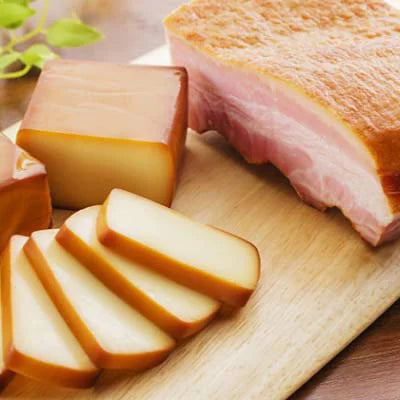 長時間の燻製によって余分な脂が落ち、さっぱりとした味わいの楽しめるスモークベーコンは