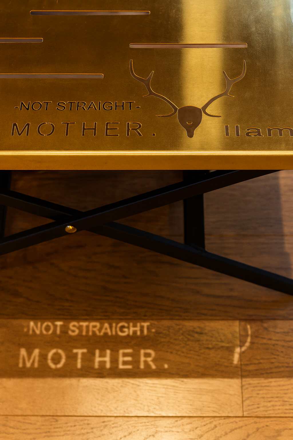 刻印された「NOT STRAIGHT」がゆらめく。